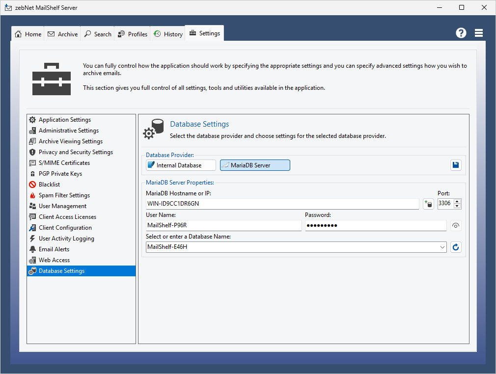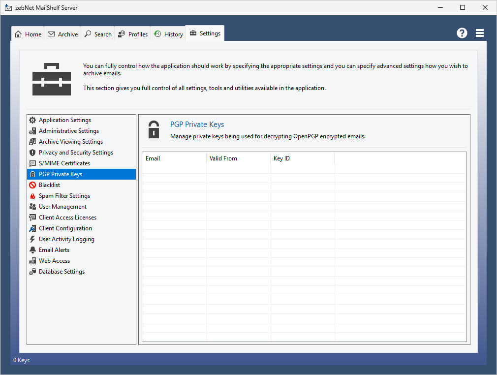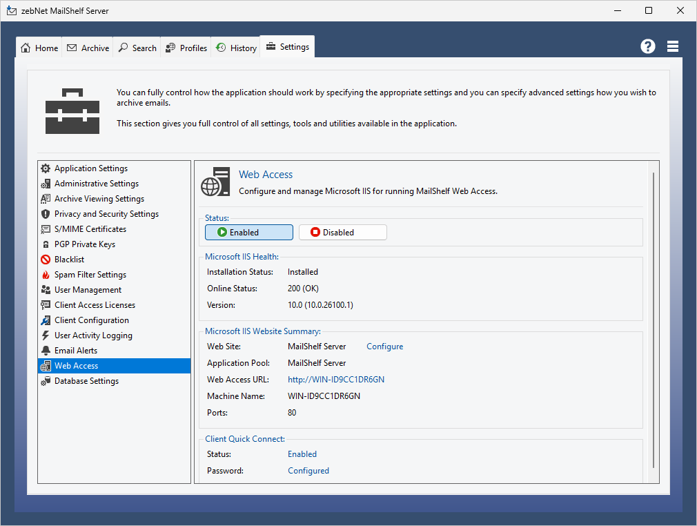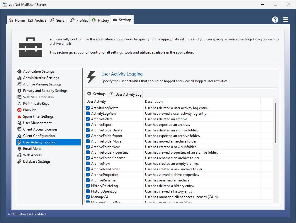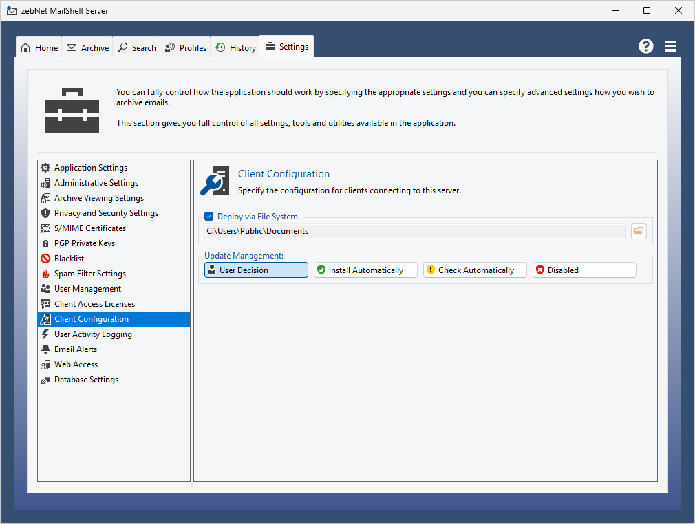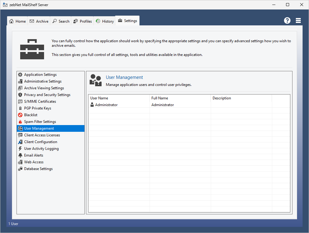 Have a look at the screenshots to get a first impression of what working with zebNet MailShelf Server looks like. Each image is only a thumbnail and you can click on an image to enlarge it.